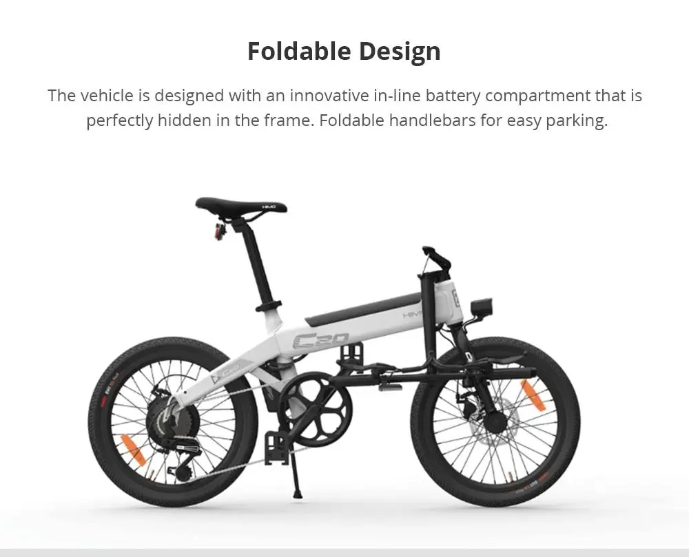 • HIMO C20 has both electric power and human power support, three riding modes. The pure electric mode meets daily commuting, and manpower or electric assist riding can make you enjoy a pleasant ride.