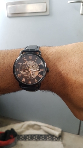 The watch arrived very quickly and I was excited to receive it and start using it. It looked exactly as pictured and is a beautiful piece. I did not realize that it was a manual wind watch and thought it was battery operated. I can live with it being a manual wind watch but my issue is that the winding mechanism is fairly tight and it feels as though it is being overdone. It also does not last very long after winding. I gave it what I thought was a full wind but it did not even last one full day and stopped while I was wearing it. Not very satisfactory in my opinion.