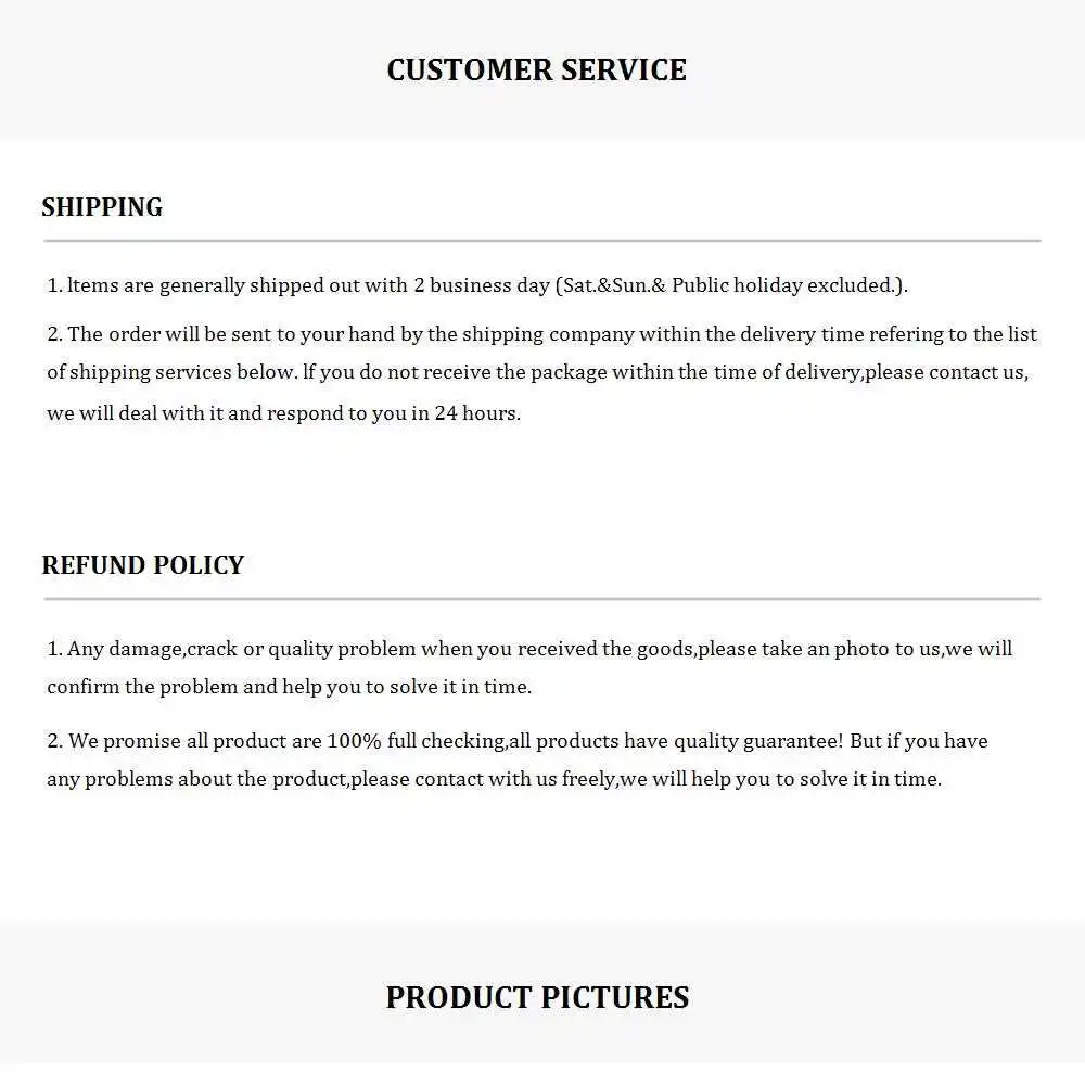 *You can submit refund requests within 15 days after the guaranteed period for delivery (45 days) has expired. You can do it by sending a message on page.