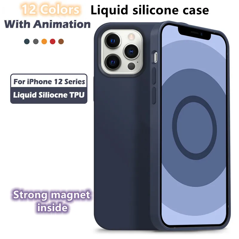 Official Color Liquid with Animation silicone Case For IPhone 12 Pro Max Magnetic Magsafing Cover For iPhone 12 Pro 12 Mini